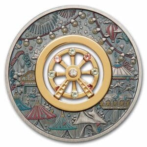Stříbrná mince Tuvalu 2 oz z roku 2025, barevná a starožitná, ruské kolo (krabička)