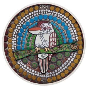 Stříbrná mince Emu Utingat 2025 – 2 oz, kolorovaná, starožitná úprava | Perthská mincovna