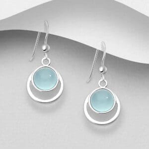 Náušnice s háčkem ze stříbra 925, zdobené světle nebesky modrým chalcedonem
