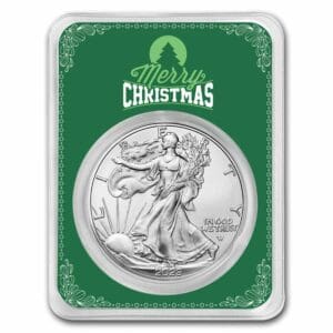 UNITED STATES MINT Americký stříbrný orel – se zeleným veselým vánočním přáním (Eagle) 1 Oz 2023