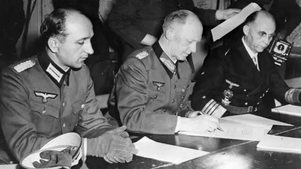 Dne 8. května 1945, známý jako Den vítězství, byl podepsán akt o kapitulaci Německa, čímž končí druhá světová válka. Předtím, než byl akt podepsán, vítězové války – Sovětský svaz, Spojené státy, Velká Británie a Francie – se sešli v Berlíně a dohodli se na podmínkách německé kapitulace.