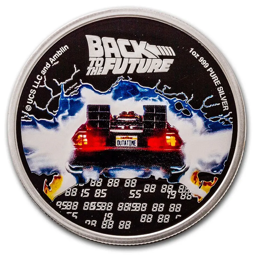 Jste fanouškem filmu, neváhejte si objednat stříbrnou minci s tématikou Back to the Future.