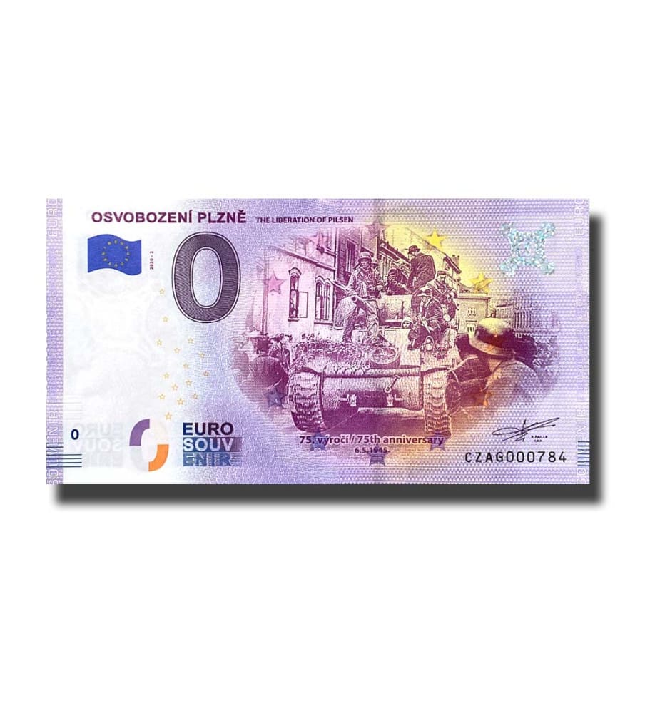 0 Euro sběratelská bankovka Osvobozeni Plzně 2020-2