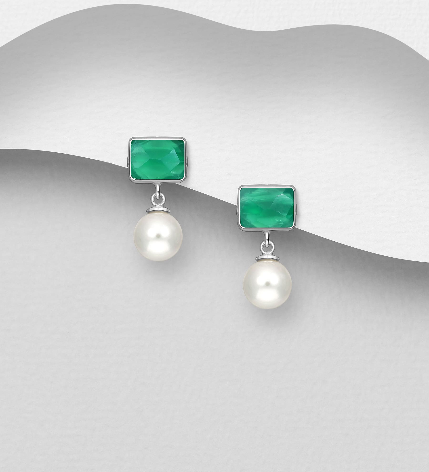 Náušnice ze stříbra 925 , zdobené drahokamem a imitacemi perel