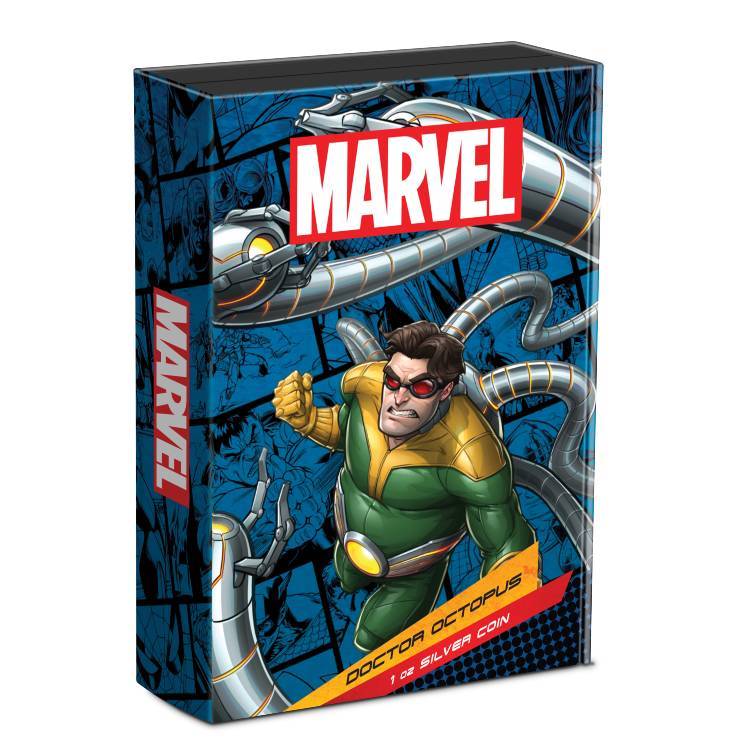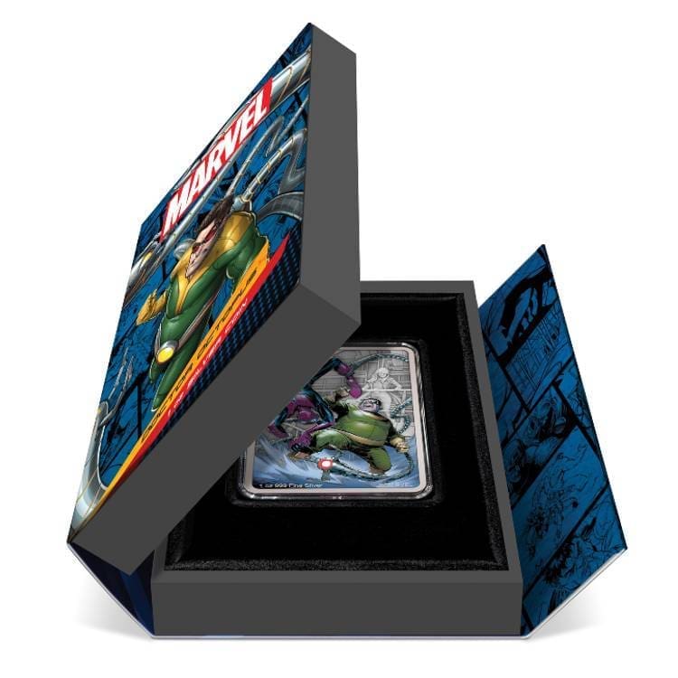 New Zealand Mint MARVEL SPIDER MAN VS DOCTOR OCTOPUS 2024 2 $ 1 OZ STŘÍBRNÁ STAROŽITNÁ BAREVNÁ MINCE