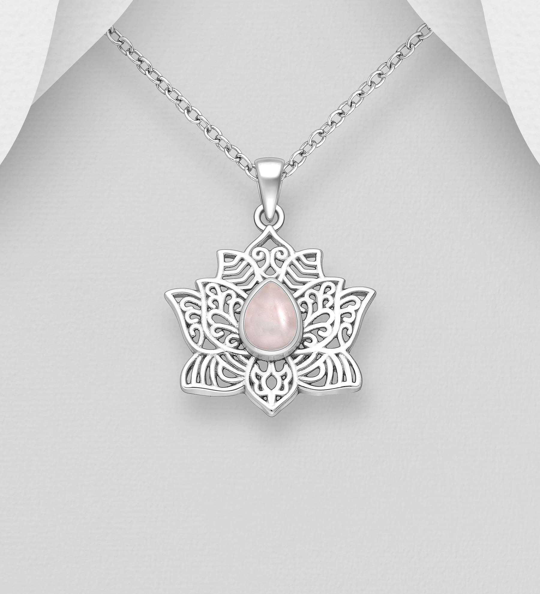 Přívěsek ze stříbra 925 lotosový květ, zdobený Růženínem