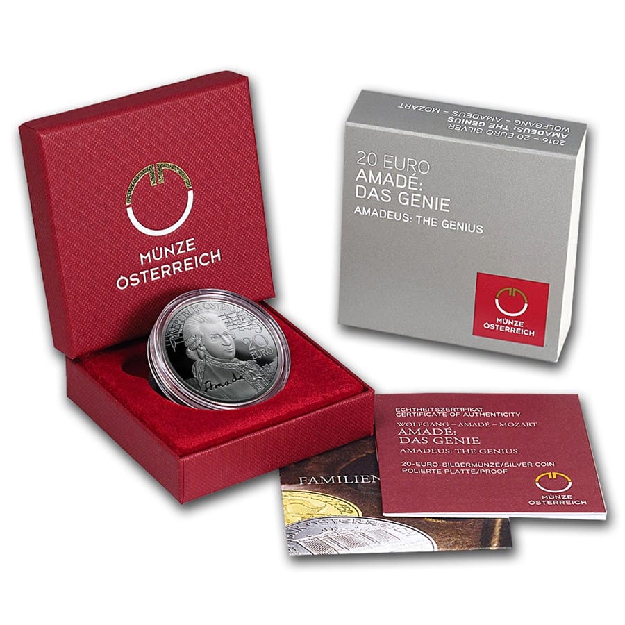 Stříbrná mince 20 € Rakousko 2016 Proof Amadeus Mozart (Génius)
