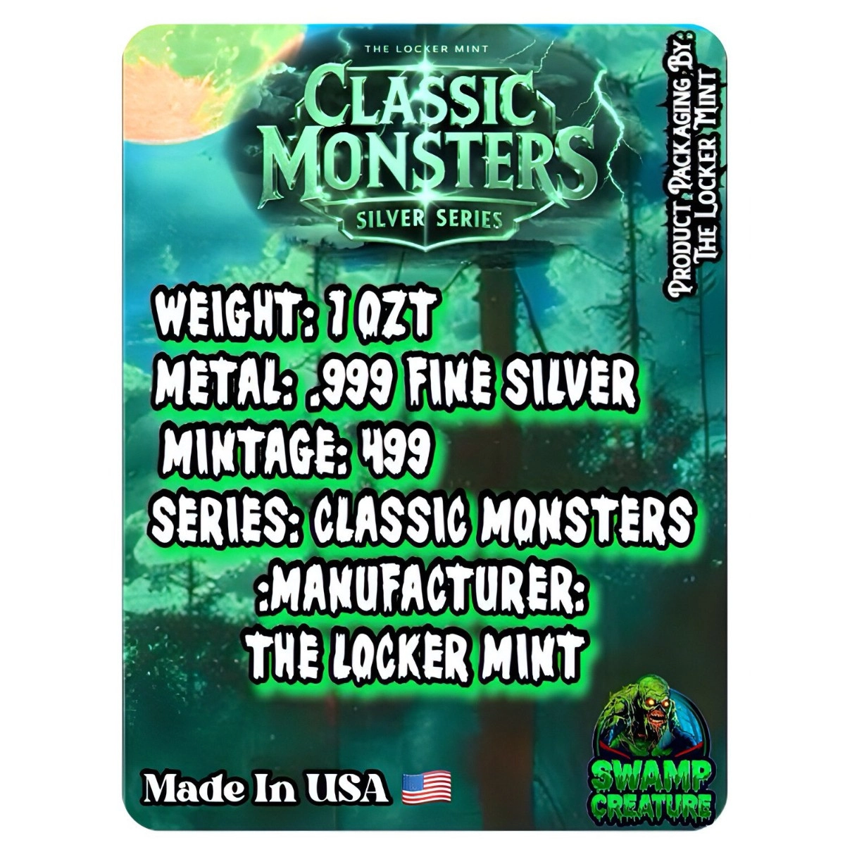 Vstupte do světa klasického hororu a kinematografické nostalgie. Stříbrná medaile Bažinná příšera (Swamp Creature) o hmotnosti 1 oz je součástí fascinující série Klasická monstra pro rok 2025. Tato emise od inovativní mincovny Locker Mint oživuje legendární stvoření z hlubin zapomenutých bažin, které po desetiletí fascinuje fanoušky sci-fi a hororu. Na Zlatoproradost.cz vám přinášíme tento unikátní sběratelský kousek, který v sobě pojí hodnotu drahého kovu a estetiku zlatého věku filmových monster.