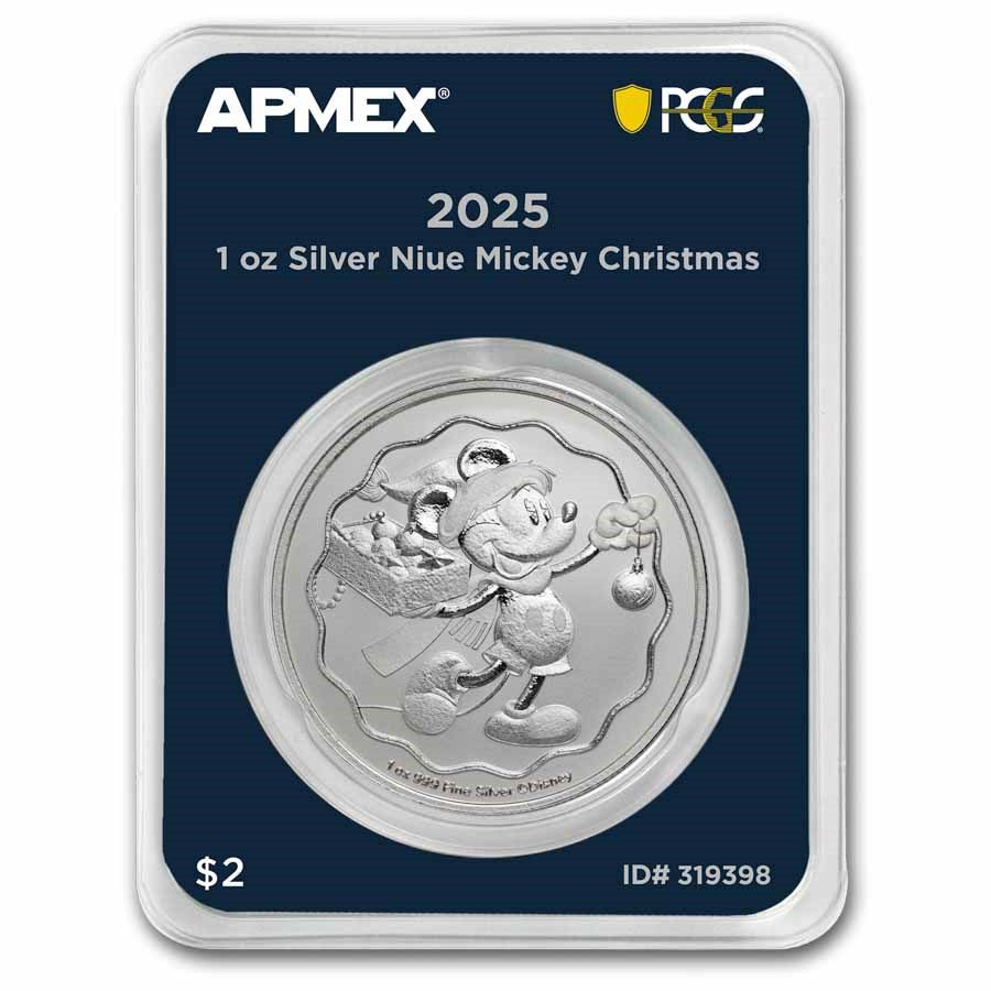 Stříbrná mince Niue 2025 – Mickey Mouse 1 oz Ag 999 2 NZD MintDirect® Premier + PCGS FirstStrike®