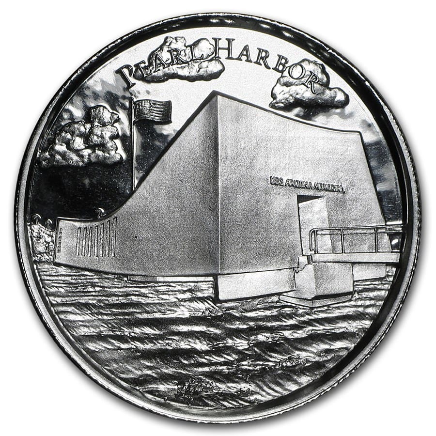 Avers: Představuje druhou světovou válku USS Arizona válečný památník a nápis “PEARL HARBOR”.