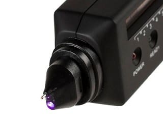 Okamžitý výsledek: Přístroj během několika sekund vyhodnotí fyzikální vlastnosti kamene a prostřednictvím světelné LED stupnice a zvukového signálu potvrdí pravost.