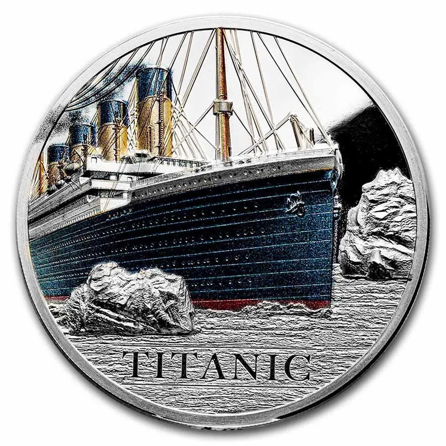 V roce 2012 byla vydaná stříbrná mince s tématikou Titanic, omezená ražba pouze 1912 ks na celý svět o váze 1 Oz